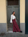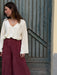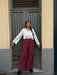 Pantapalazzo molto ampio con elastico in vita, non hanno le tasche.
