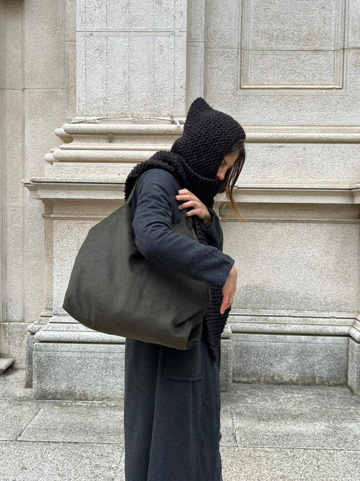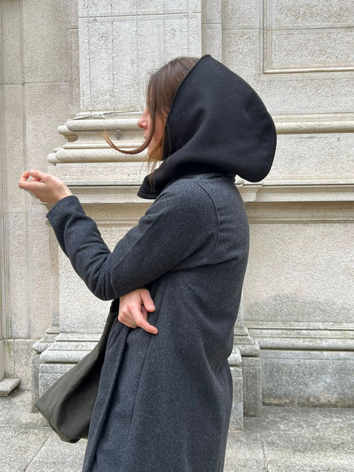 EsauritoPassamontagna Balaclava double face: esternamente cucito in morbida lana nera e internamente cucito in lana bouclé color grigio scuroPuò essere ind...