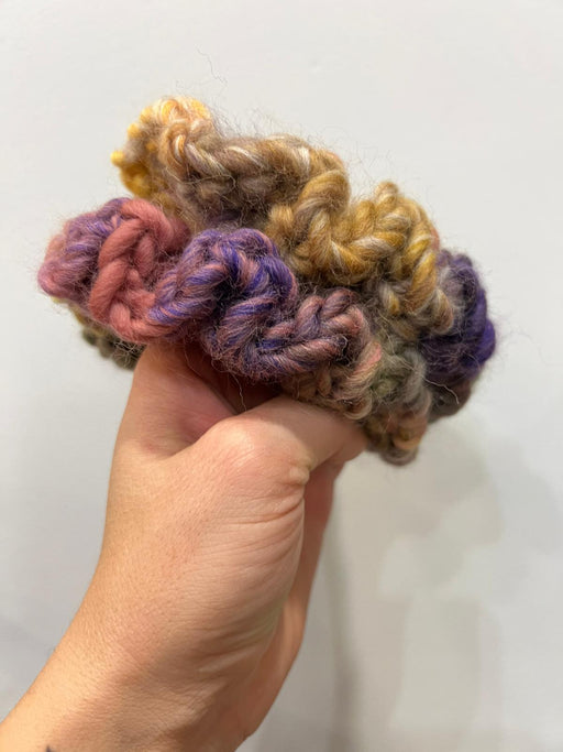 Solo 2 in magazzino!Elastico per capelli molto ampio lavorato all’uncinetto, confezionato in 100% lana color sabbia e bordeaux.Diametro: 20 cmSi consiglia il lavaggio ...