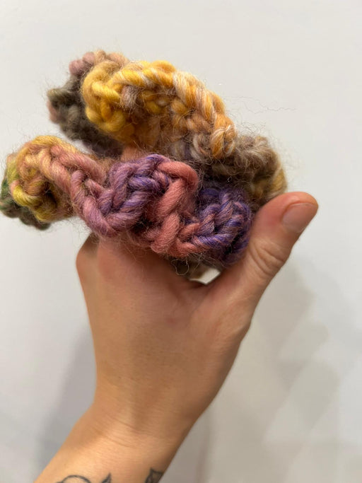 Solo 2 in magazzino!Fifì per capelli fatto all’uncinetto in 100% lana multicolore. Diametro 15 cm
