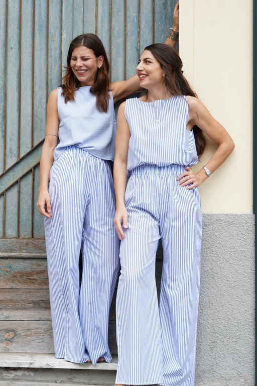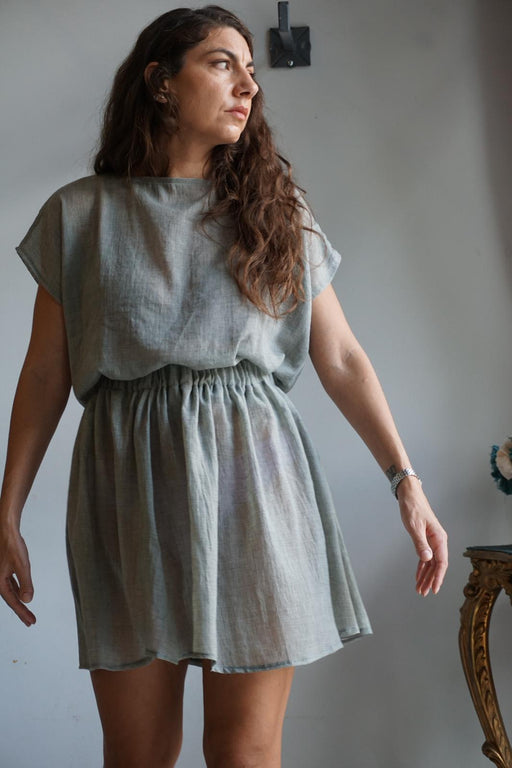 Solo 5 in magazzino!Abito smanicato con taglio a trapezio e scollo a barchetta, cucito in 100% cotone a quadretti blu, marroni e panna.Il tessuto è cadente e adatto a ...