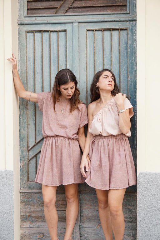 Solo 1 in magazzino!Gonna corta incrociata a portafoglio.Non ha l’asola di passaggio della cintura, il girovita si regola sovrapponendo i due lati.Cucita in 100% coton...
