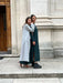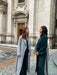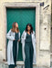 Cappotto monopetto lungo, sfoderato, taglio oversize, con bavero ampio sciallato, maniche lunghe e tasche invisibili lungo i fianchi.