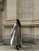 Cucito in lana in fantasia spigata color grigio chiaro melangé e bianco.