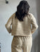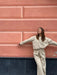 Il tessuto é cadente, di peso medio dalla mano asciutta e abbastanza elasticizzato.