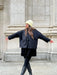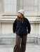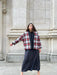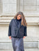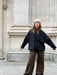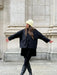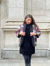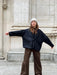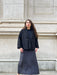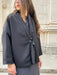 Giacca a kimono double face con scollo a scialle e chiusura con laccetti da annodare.
