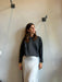 Il tessuto è strutturato, cadente, di peso medio e molto elasticizzato.