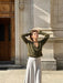Gonna midi dal taglio leggermente svasato, senza tasche, elastici, bottoni o zip.
