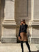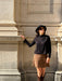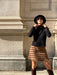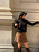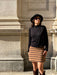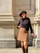 Gonna corta dal taglio leggermente svasato, senza tasche, elastici, bottoni o zip.