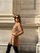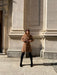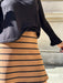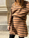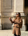 Cucita in maglia di cotone color biscotto a righe sottili nere.