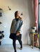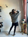 Il tessuto è cadente e strutturato, di peso medio e caldo.
