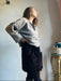 Minigonna da portare a vita alta con taglio a trapezio, elastico in vita e dettaglio delle tasche applicate sul davanti.