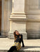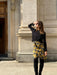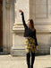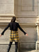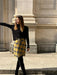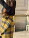 Cucita in twill misto lana in fantasia tartan sui toni del giallo e nero.