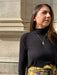 Maglia leggero dal taglio leggermente svasato con collo alto e manica lunga.