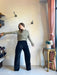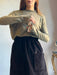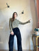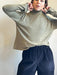 Maglioncino leggero dal taglio leggermente svasato con collo alto e manica lunga a campana.