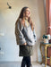 Il tessuto è cadente e di peso medio, caldo e strutturato, dalla mano asciutta.