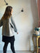 Maglione dal taglio a scatoletta con manica raglan lunga e scollo a V, con polsini rifiniti con bordo dello stesso materiale.