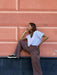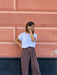 Pantapalazzo non troppo ampi con elastico in vita, non hanno le tasche.