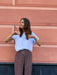 Il tessuto é cadente e leggero. Non è elasticizzato.