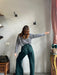 Pantapalazzo non troppo ampi con elastico in vita, non hanno le tasche.