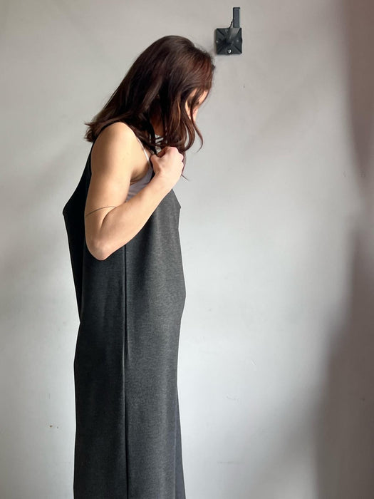 Cucita in punto Milano di viscosa color grigio antracite.