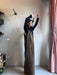 Tuta intera con pantalone a palazzo, scollo a V e spallina sottile.